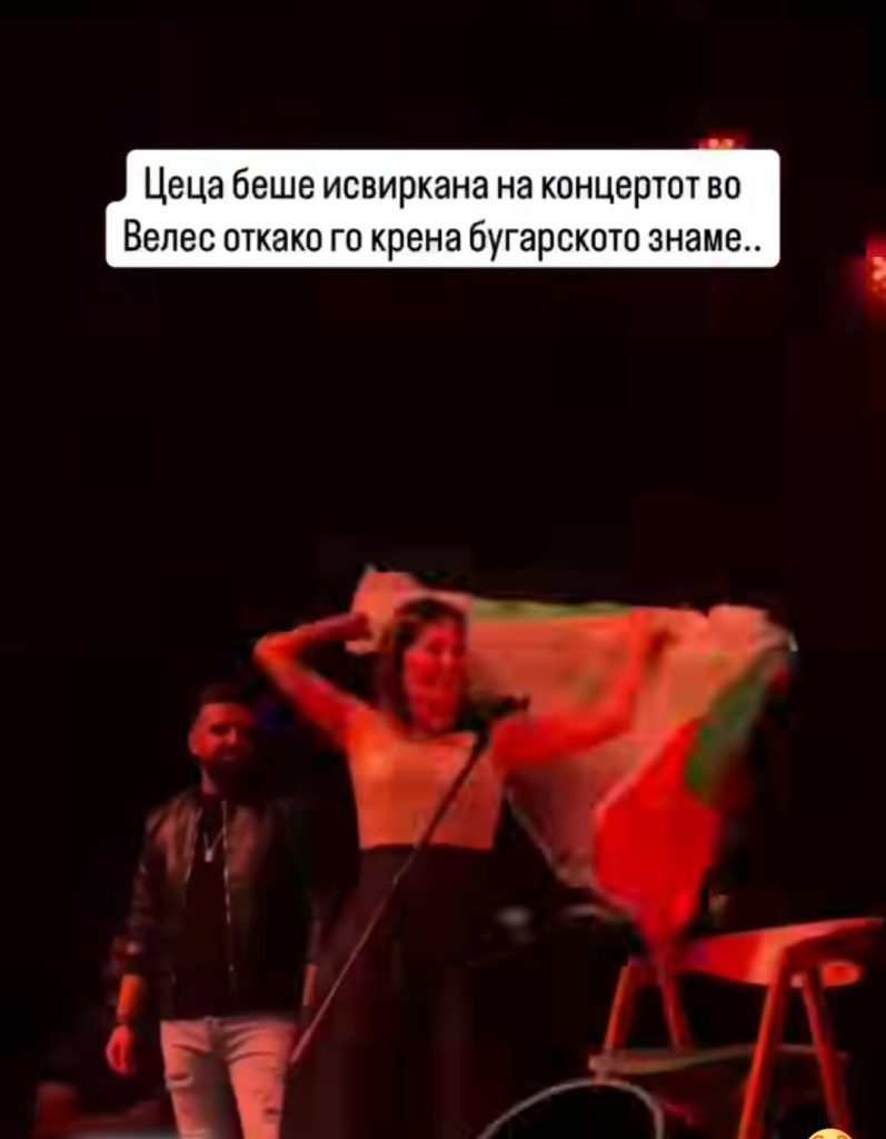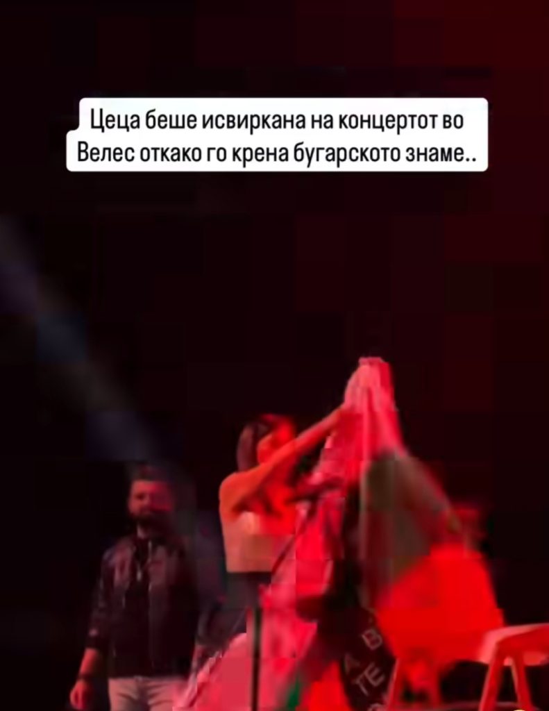 Овојпат, повод за нови тензии е скандалот што се случи на синоќешниот концерт на Цеца во Велес, кога пејачката го разви бугарското знаме на својот грб. Настанот предизвика бурни реакции кај публиката, дел од која ја исвирка, а организаторите набрзо ја повлекоа од сцената.